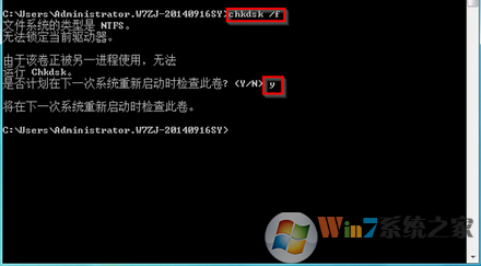 2.运行CHKDSK /f检修硬盘驱动器,然后重新启动计算机。