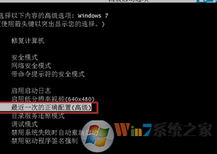 3.在启动屏幕处,按F8进入高级启动选项,然后选择“最近一次的正确配置”即可。
