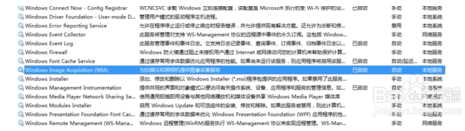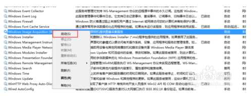 2、然后找到Windows Image Acquisition (WIA)服务(为扫描仪和照相机提供图像采集服务),如果各位看这个服务是“已启动”那就不用往下看了,再去找找其他的解决办法吧。