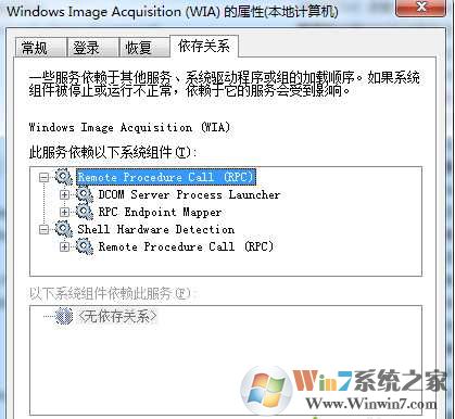 4、Windows Image Acquisition有 (WIA)2个依赖服务项,Shell Hardware Detection和Remote Procedure Call (RPC)。