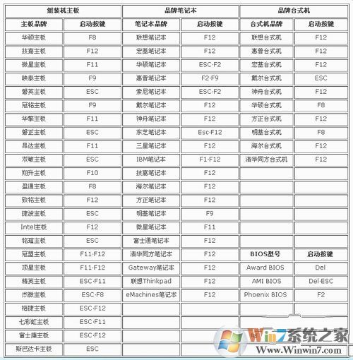 1、按下电脑电源,参考上述图片中对应品牌的热键不停的按,即可进入到启动界面;