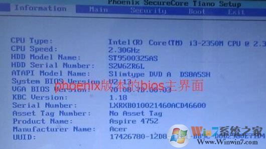 2、进入电脑bios设置界面,这边以phoenix版本的bios作为示范,如图: