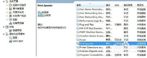 2、在服务和应用程序中点击服务,并找到print spooler服务;