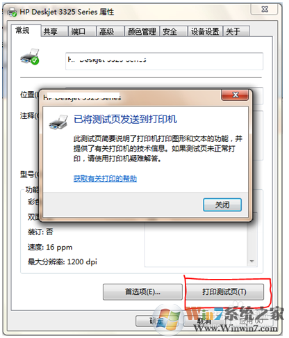 7、我们打开打印机右键属性,打印测试,成功打印出来说明问题解决了。
