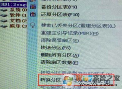 1、重新使用U盘工具进入pe系统,运行dg分区工具(diskgen),把所以分区全部是删除,然后在点击菜单栏里面的硬盘,里面有一个,磁盘转换为MBR的选项,如果有资料的话先进行备份哦
