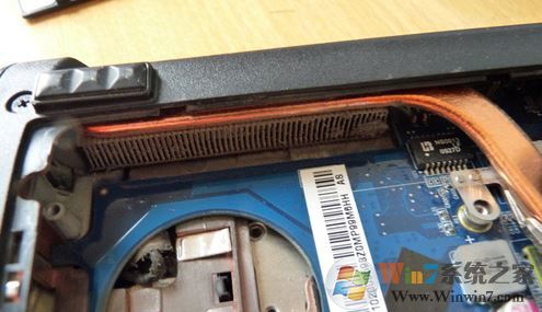 2、散热通道的散热片出风口、主机下盖的进风口的灰尘状况,需要进行全面的清理。可使用的工具:刷子、皮老虎(注:不可使用酒精、天那水对散热片进行清洗)。如下图所示:
