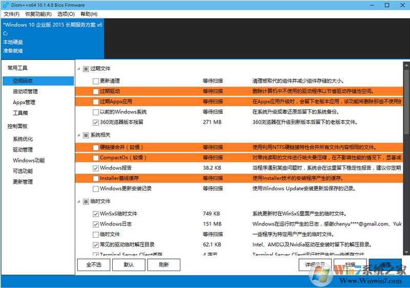 C盘清理瘦身工具三:Dism++ Win7更新清理工具