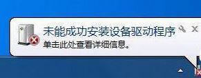 2、将USB无线网卡插入台式电脑机箱背面的USB接口,完成后,一般电脑会提示有“未能成功安装设备驱动程序”,如下图所示,在任务栏中出现了设备未能正常安装的提示: