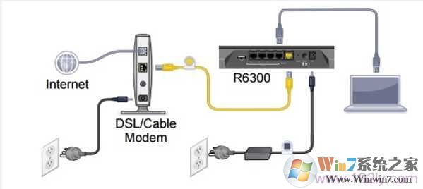 首先用户需要准备2根网线,一根网线用来连接ADSL Modem(宽带猫或是光纤猫)与NETGEAR路由器的WAN接口;另一根网线用来连接计算机与路由器的LAN接口(1/2/3/4中的任意一个都可以)。