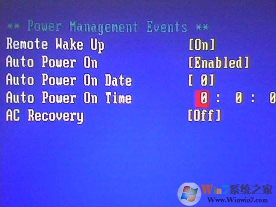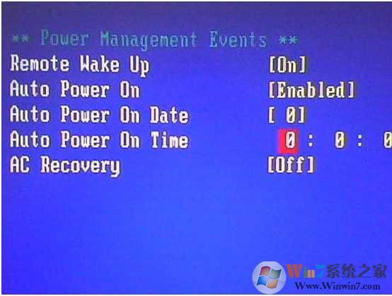 3. 在上图中的“Auto Power On Date”选项中,其键值设为0,为每天定时开机。而“Auto Power On Time”选项则是表示开机时间,自己选择,上图的自动开机时间为每天的凌晨“00:00:00”。全部设置好后,按F10,保存并重新启动即可。