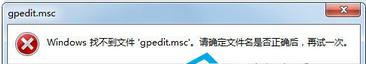 4、移动后,我们再到Win7运行中执行gpedit.msc命令,则会出现找不到gpedit.msc的提示。