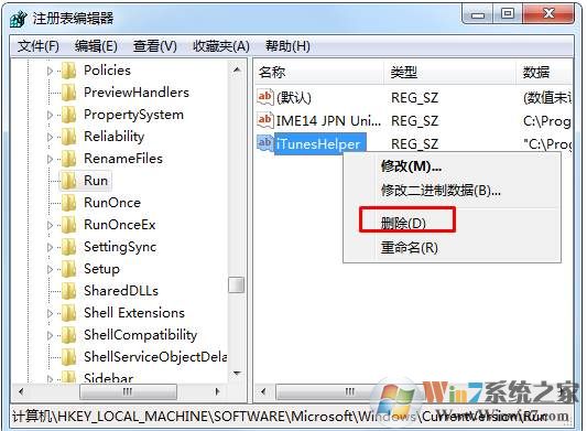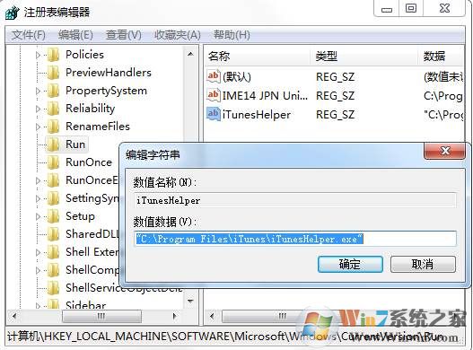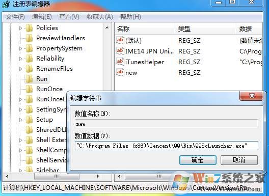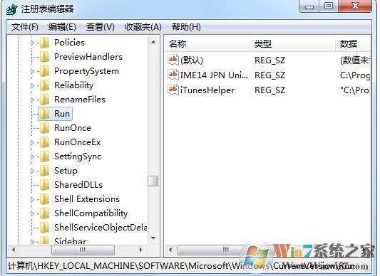 2、Win7系统注册表中启动项位置有以下几个,如果是删除修改,那么需要找以下每个启动项。