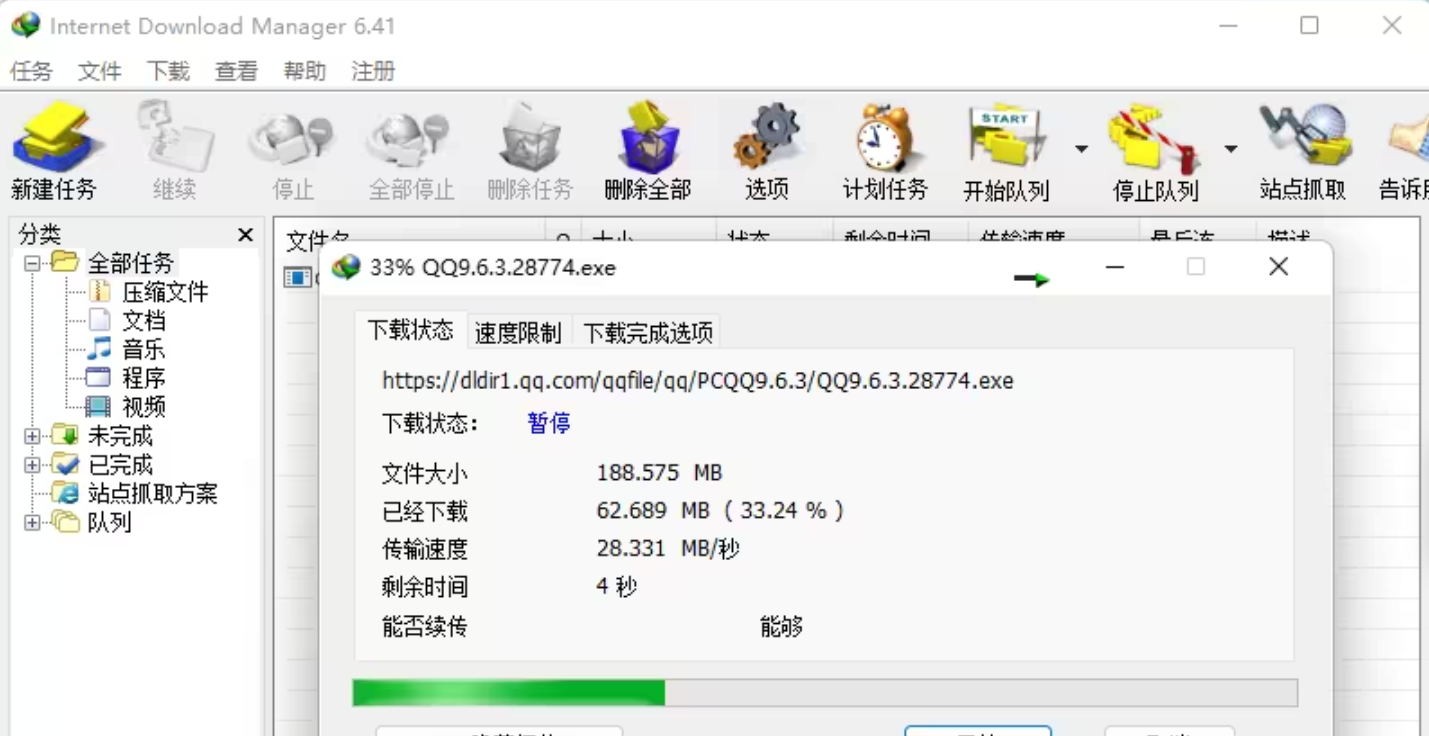 IDM下载器就像你的私人下载助手,让你告别下载慢如蜗牛的时代。不仅如此,IDM下载器还能在下载过程中,应对网络中断、断电和连接丢失等突发情况,确保你的下载任务能够顺利完成。