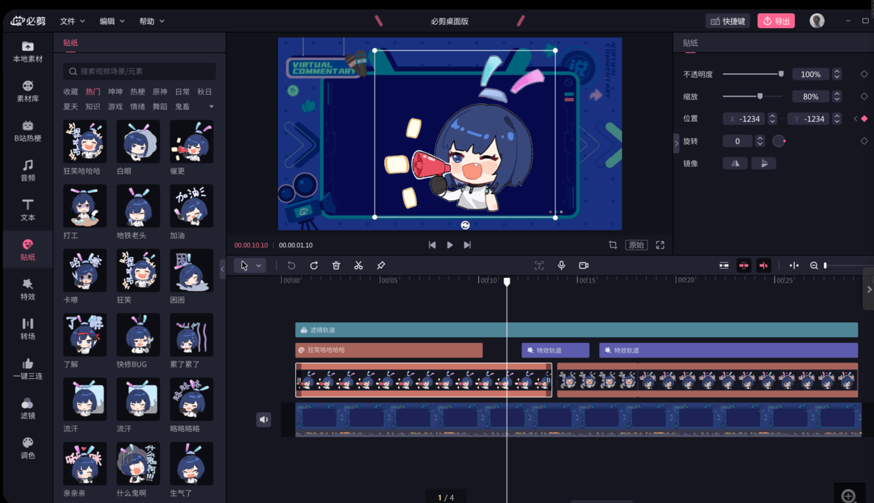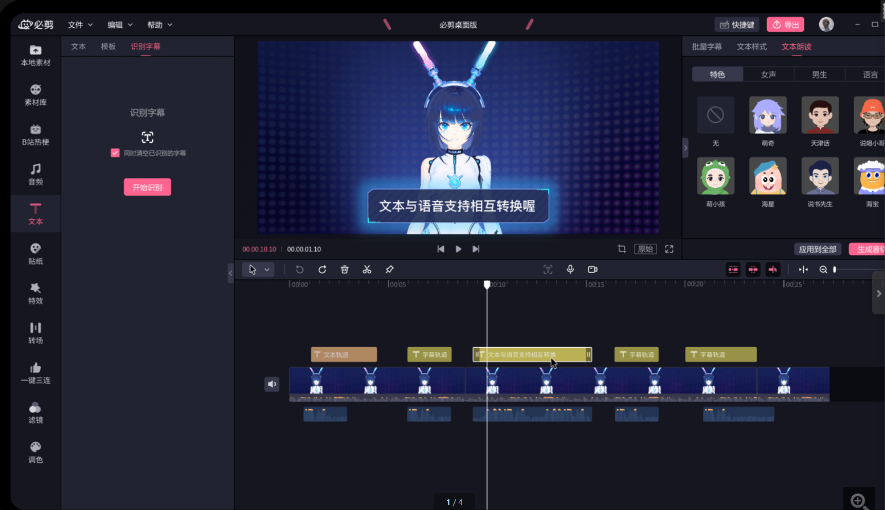 1、必剪的功能比较丰富,除常规的视频剪辑、变速、添加文字贴纸、添加特效外,还支持变声功能。