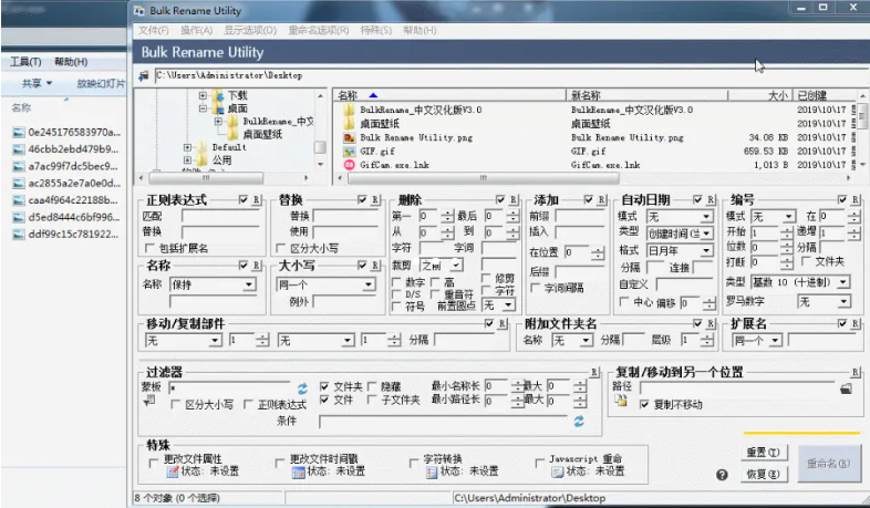Bulk Rename Utility是一款非常强大的文件批量重命名软件,这款文件重命名软件曾被多个网站誉为“最好用的文件重命名工具”。无论你的原始文件名多么复杂,它都可以在顷刻间把其重命名为你需要的格式,并且支持文件批量重命名。对于文件重命名, Bulk Rename Utility 可谓无所不能,实在是我们整理素材、文件不可多得的实用软件。