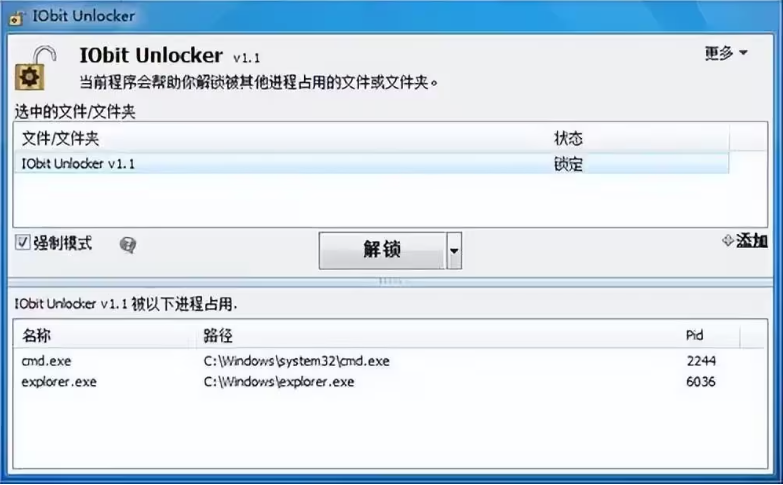 Unlocker是一个图形化的应用程序,同时也提供命令行访问方式。它可以卸载动态链接库(DLL)、终止进程,以及强迫进程停止使用某个文件(这个功能在软件中被称为“Unlocker”(解锁))。