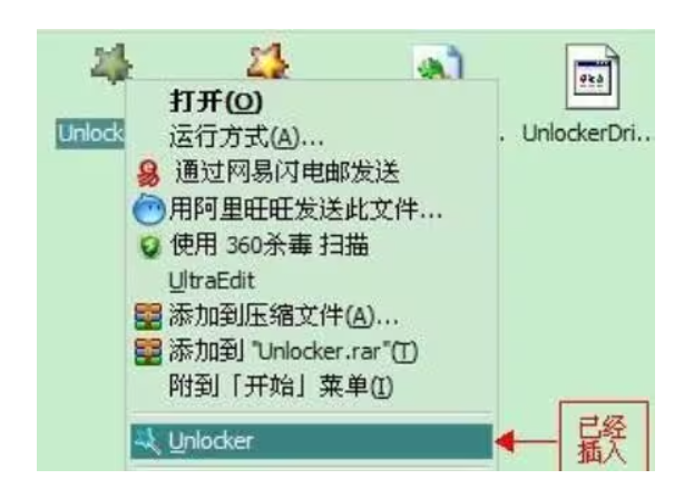 用户安装Unlocker后,软件将整合于鼠标右键的操作当中。当用户发现某个文件或目录无法删除时,可直接右键鼠标“Unlocker”,删除。