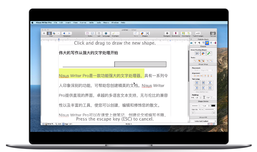 专为Mac而设计:Nisus Writer是专为Mac设计的,所以感觉像家一样支持macOS自动保存,文档版本控制,选项卡式窗口和iCloud。