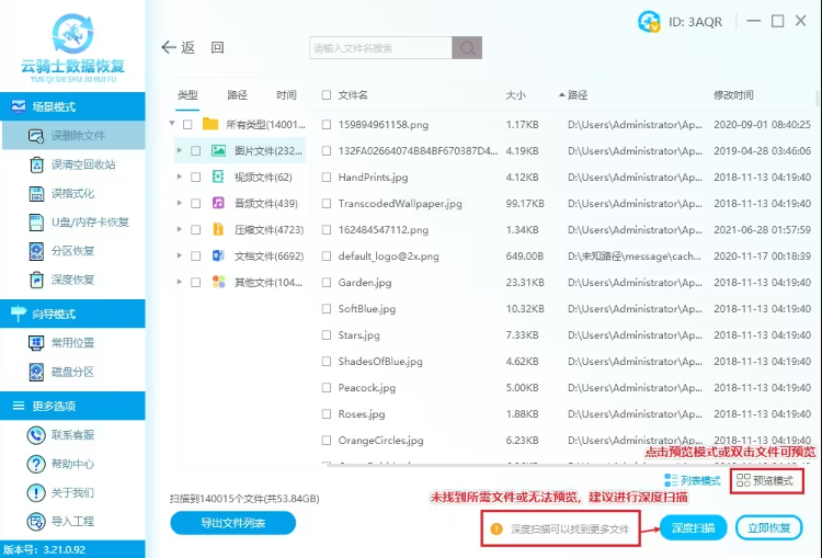 通过使用软件提供的免费扫描和预览功能,用户可以在执行恢复前,检查丢失的文件是否可以被有效恢复。