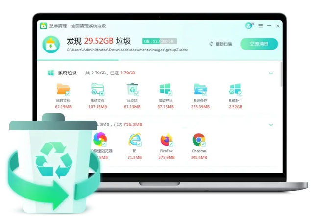 1、安全清理垃圾,不用担心误删文件。C盘清理最担心的就是误删文件,如果大家用网上的手动清理教程,这样误删的情况就会大大的发生。芝麻清理软件全程自动化处理C盘垃圾。