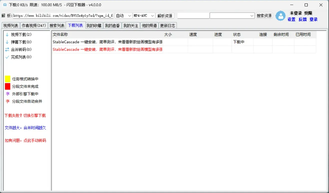 支持批量下载、转码自动合并,支持登录网站账号,解析下载会员视频,并且每个视频站所能解析和下载的内容在上面列表中均有标注。