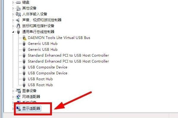 2、进入设备管理器后,拖动滑条找到“显示适配器”并双击鼠标。