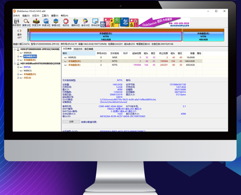 DiskGenius是一款专业级的数据恢复软件,算法精湛、功能强大,用户群体广泛;支持各种情况下的文件恢复和分区恢复,恢复效果好;文件预览、扇区编辑、加密分区恢复、Ext4分区恢复、RAID恢复等高级功能应有尽有,满足个人用户及企业用户对数据恢复的各种需求。DiskGenius功能全面,安全可靠除提供基本的分区管理功能外,还提供了分区备份还原、更多实用、便利的特色功能,需要的用户欢迎下载使用。