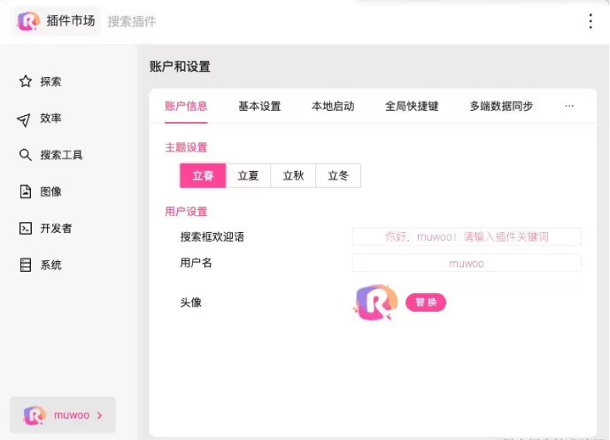 1、主题色设置:你可以在 Rubick 中自定义主题色,我们提供了 4 套配色方案(立春、立夏、立秋、立冬)供你选择。主题色是我们参考中国风精心选择搭配。
