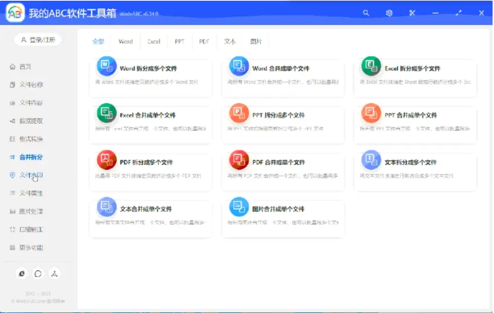 我的ABC工具箱支持几十种常用功能,各种格式的文件转换、编辑、文档加密解密、合并拆分、水印、压缩等全都能完美搞定,它能满足用户大部分的日常需求,从事电脑编辑类的工作的人非常适合。免费用户同样支持使用所有功能,只是最多能同时处理五个文件,但这也完全够用了。