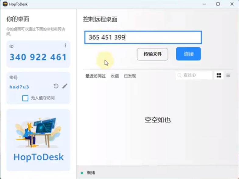 安装完成后,您可以看到 HopToDesk 的主界面,如下图所示: