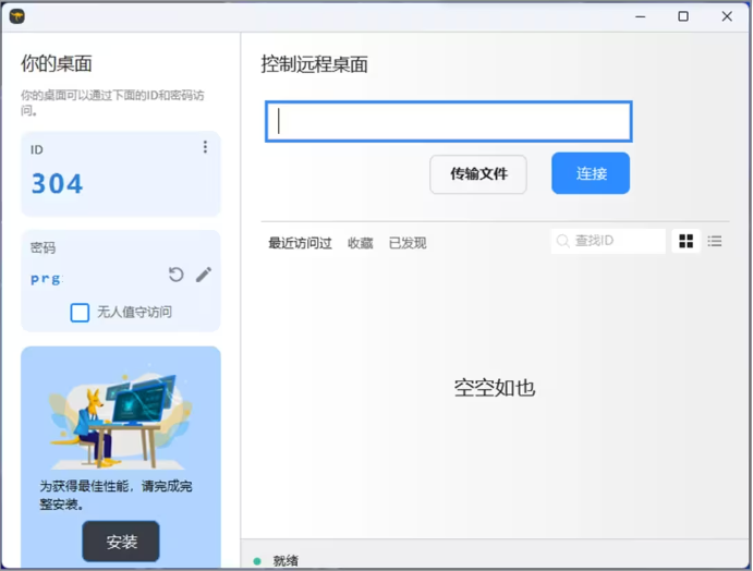 等待对方接受您的连接请求,或者如果对方已经设置了“无人值守访问”,可以直接进入远程会话。