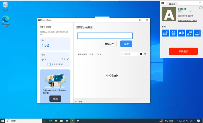 HopToDesk是一款免费的远程桌面软件,可以在不同的设备之间共享屏幕和控制权限。HopToDesk 支持 Windows、Mac、Linux、Android、iOS 等多种平台。开源免费,不需要账户,轻便无广告。除了会有延迟,其他一切都挺好,还支持手机电脑,手机手机互相协同,互传文件,非常完美。