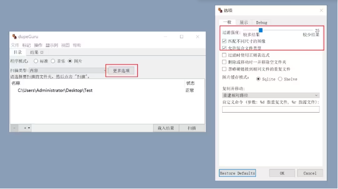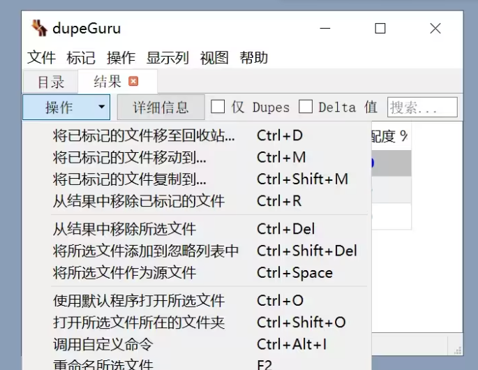dupeGuru是一款完全免费开源的在计算机上查找重复文件的工具,它可以可用于搜索各类格式的文档、压缩包、安装包等一切文件,支持 JPG、PNG、TIFF、GIF和BMP等图片格式,可以轻松揪出那些重复的照片和图片收藏,跨平台支持 Windows、Mac 与 Linux 系统,而且软件小巧、简单易用,支持包含简体中文在内的多国语言界面,可轻松快速上手。软件的扫描效率很快,还提供了各种结果对比,清理重复文件时非常实用。能扫描普通文件/文件夹,并且能对音乐和图片作出优化。