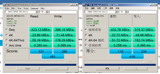 4K(4k单队列深度)模式:在该模式下,测试软件使用512KB的单位尺寸生成一个大小为1GB的测试文件,并在该文件地址范围内进行随机4KB单位尺寸的写入和读取测试。测试结束后,根据平均成绩给出结果。