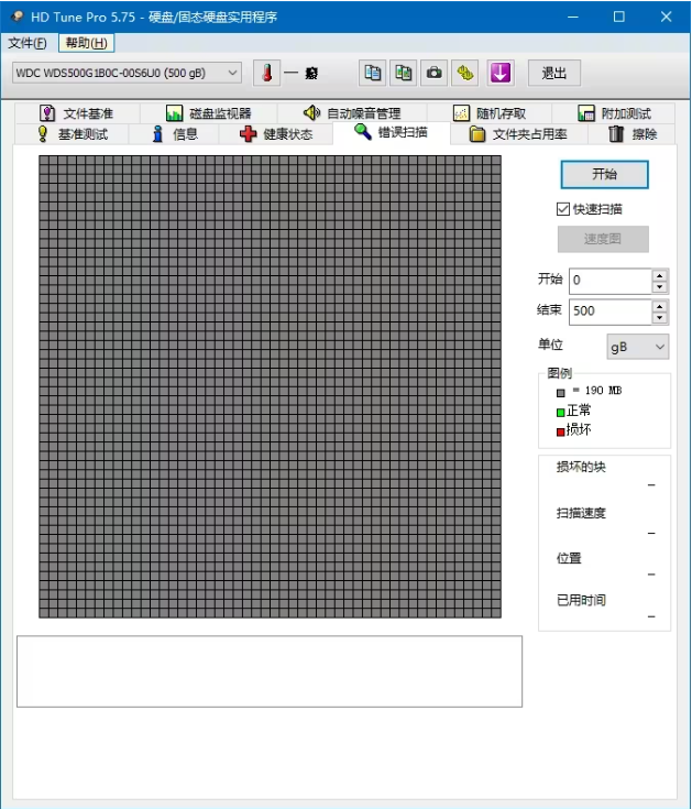 4、错误扫描测试 在错误扫描测试页面,用户可以点击“开始”按钮,来检测磁盘是否存在损坏的扇区。但用户要注意的是,如果没有勾选“快速扫描”选项那么运行时间会比较长,所以建议用户勾选此选项来快速进行检测。