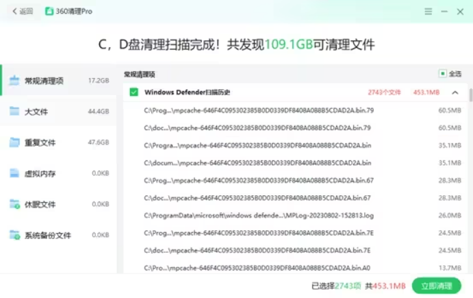 系统备份文件里面的可清理文件扫描出来,一键搞定,真正的实现操作便捷。