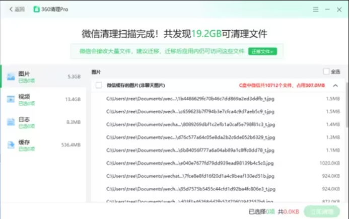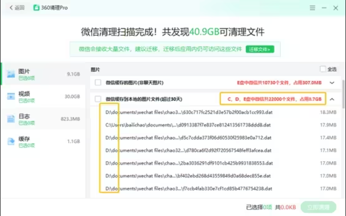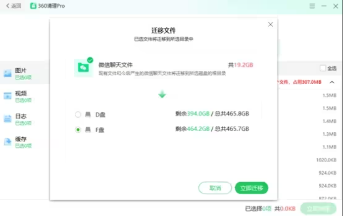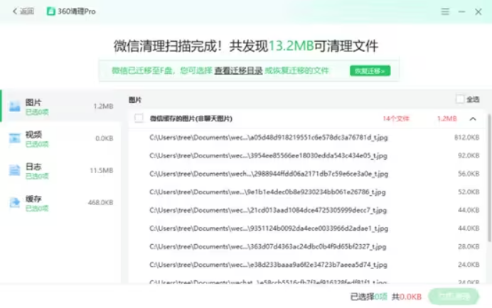 为了提升体验避免用户误操作,清理对于微信的大部分内容均不会默认勾选,通过反馈我们发现用户主动勾选的比例并不高,所以本次新增的微信目录迁移功能,此目的是将微信目录迁移至其他的盘从而释放系统盘的空间,具体操作步骤如下: