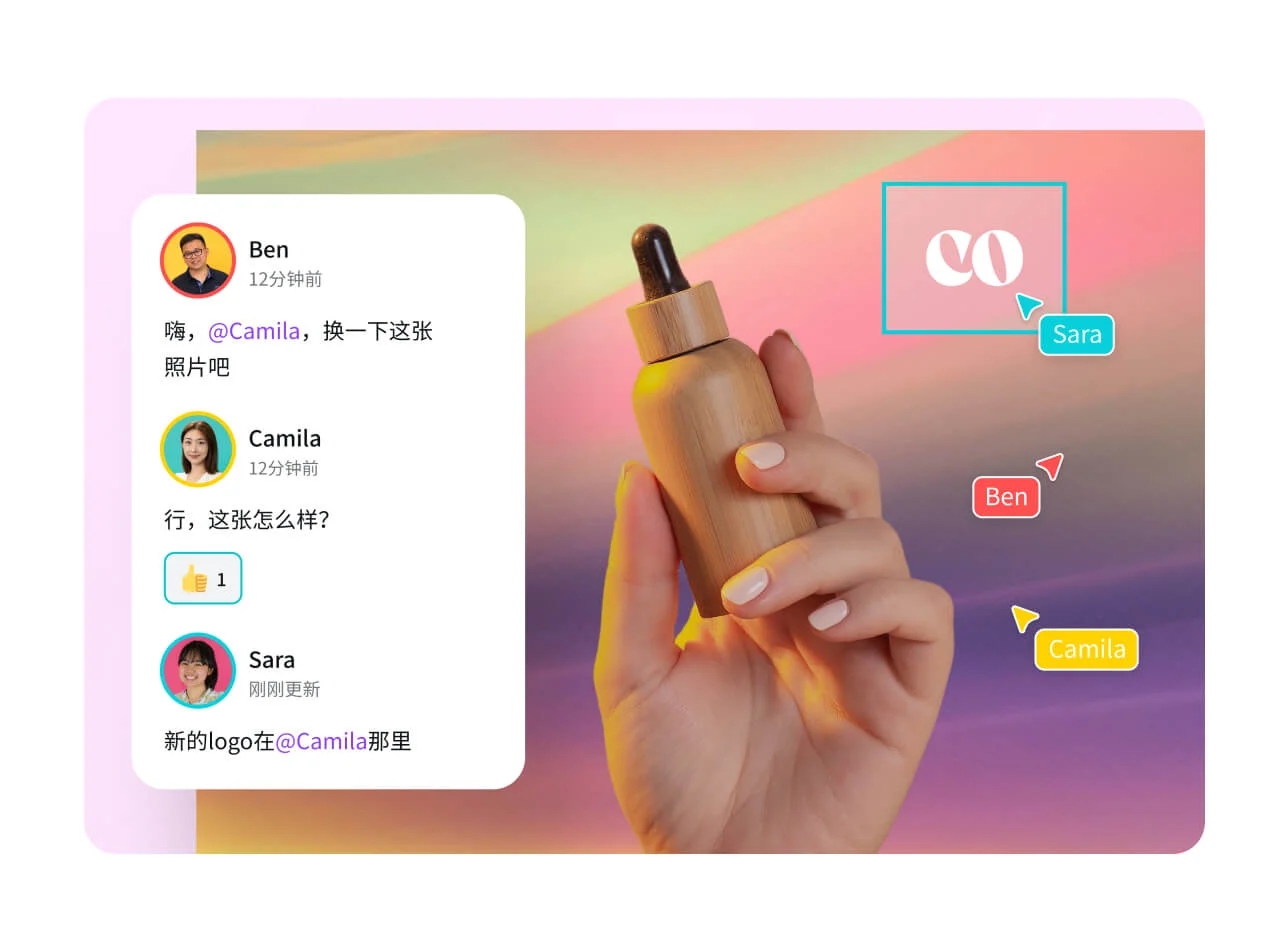 邀请朋友和家人与你一起设计,或者邀请整个团队开展协作。使用我们的协同设计功能,用户可以实时评论,还能协同设计演示文稿、白板、文档、视频,甚至策划生日派对。
