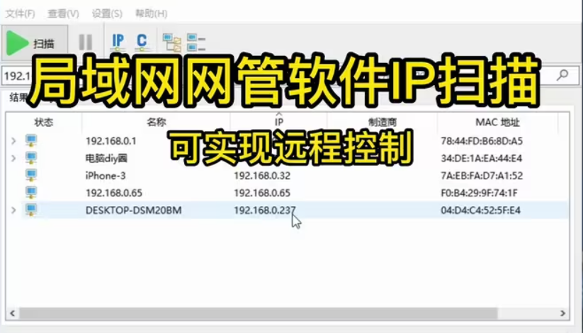 IP Scanner是一个绿色免费网络扫描器,它能够快速的扫描局域网中存在ip地址的所有设备以及pc机的活跃状态,还能列出相关信息。并且能够实现远程关机和唤醒、远程控制,您可以访问共享文件夹。IP Scanner旨在允许您自定义扫描结果; 一旦识别出设备,您可以为其分配一个自定义图标和名称,以便更容易一目了然地识别它。