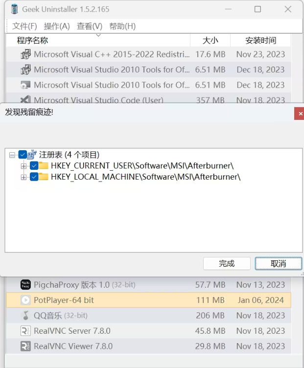 市面上有不少专门的卸载工具,使用它们来卸载软件时可以扫描出残留的垃圾,Geek Uninstaller是其中最为流行的一款。