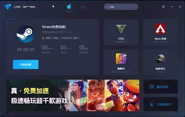 它还支持自动智能加速,选择好游戏和区服后,会自动推荐和当前网络环境最适配的节点,一秒加速低延迟畅玩。