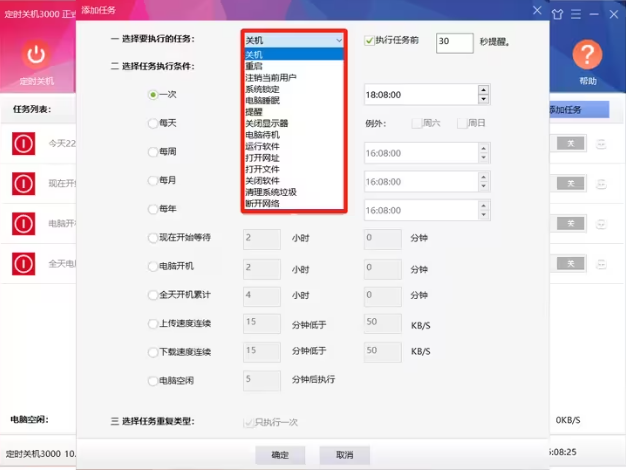 注意:所有任务均需要在电脑开机状态下才能执行。重启任务并不是定时开机。
