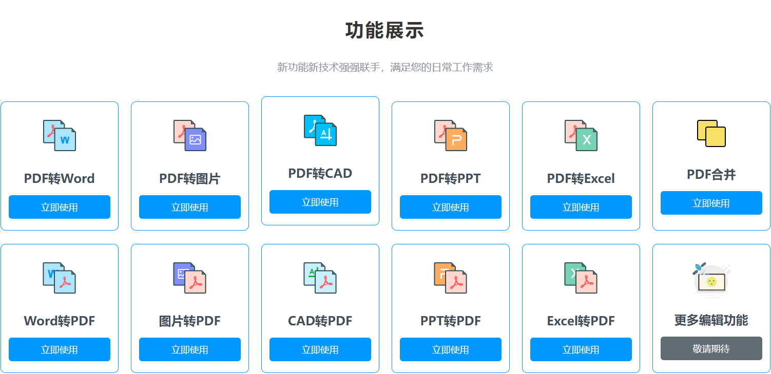PDF转WORD、PDF转PPT、PDF转图片、PDF转CAD、PDF转Excel。