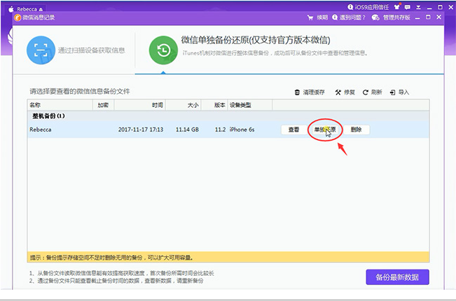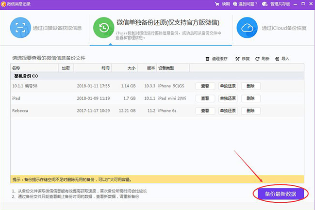 4、微信数据管理:一键备份iPhone/iPad微信数据,轻松存档聊天记录,让美好回忆时刻保存。更有微信聊天记录恢复功能,帮助恢复已删聊天记录。