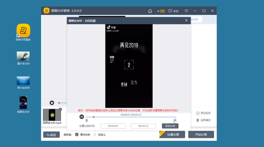 3、除此之外,图图水印管家还具备添加图片水印、视频去水印、视频加水印的功能。