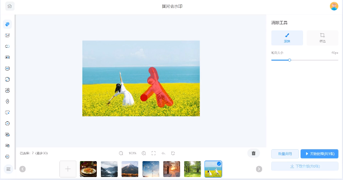 2、水印云去水印工具真心给力,一键去除图片上的水印痕迹,效果自然如同原图无瑕,完全不留痕迹。操作简便高效,兼容各类图片格式。无论是商业使用还是个人收藏,它都是必备神器!