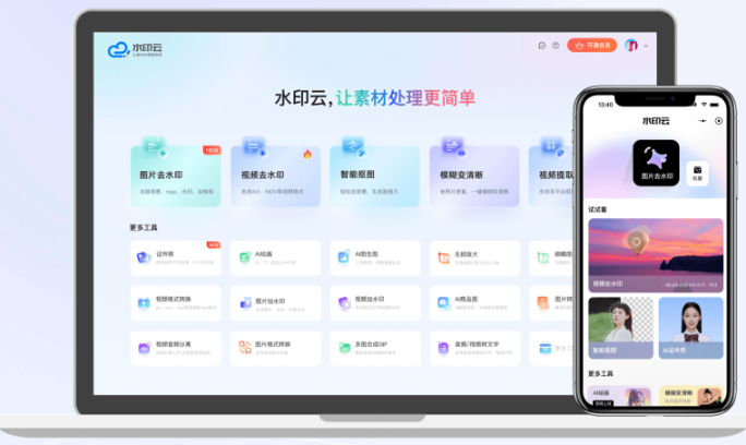 水印云是一款超强AI图像处理工具,提供丰富图像编辑功能,用AI将图像处理极简化,真正实现简单高效处理图像,水印云同时支持Windows,Mac,Android、IOS以及微信小程序。多端适配,功能丰富、操作简单、智能快捷,一键提升您的作图效率。