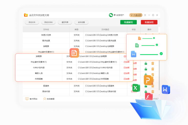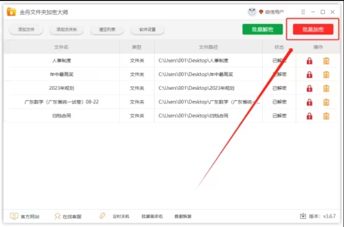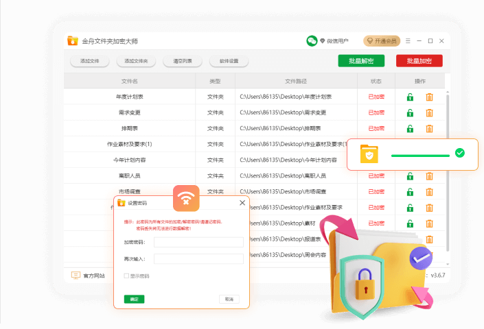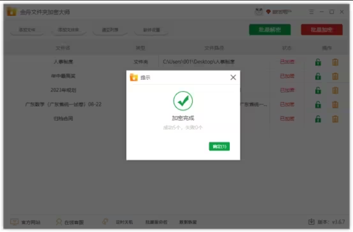 可批量导入文件到文件加密,也可选择多个文件夹一键加密!
