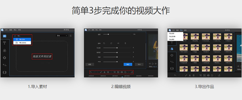 此视频编辑工具可在日常使用,如:教学内容、软件介绍、培训资料、电影剪辑、营销视频制作等。丰富的特效,让您畅享影音乐趣。