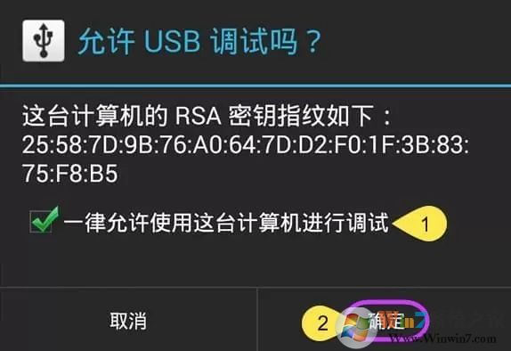 2、使用USB数据线连接安卓手机与电脑,如遇询问允许调试模式窗口,选择“一律允许使用这台计算机进行调试”后,点击“确定”。静待几秒,APP就安装成功了。